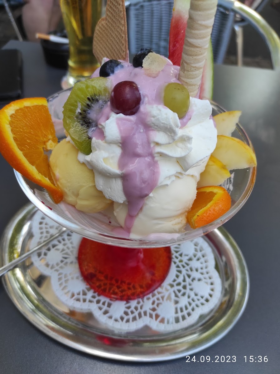 One of the standout features of Fallscheer is its delectable menu, which shines brightly with a variety of pastries, cakes, and their famous Spaghetti Eis. Imagine creamy vanilla ice cream artfully sculpted and presented like a plate of spaghetti, drizzled generously with fruity sauce and sprinkled with crushed nuts – it's a delightful sight that promises to delight both the eyes and palate. The portion sizes are generous, ensuring that you don’t leave with an empty stomach, something that both Rainer Klein and Elvis Rudi can attest to, with Rainer describing the service as “toller und freundlicher” (great and friendly) and eager to return for more.